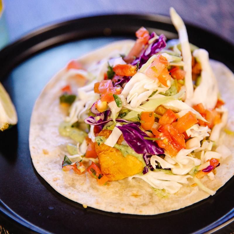 Tempura fried cod, garnished with salsa baja & Mexican slaw.